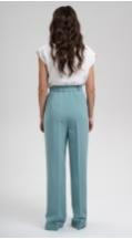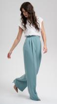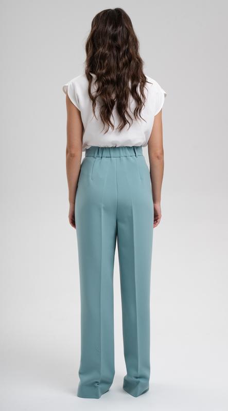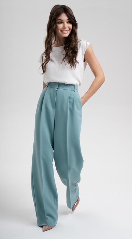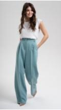 Обязательный предмет базового гардероба – стильные широкие брюки с 2-мя мягкими защипами из костюмной поливискозы. Брюки с карманами, с удобной посадкой на талии и на притачном поясе с резиной по задней половинке, застегивающиеся на крючок. Вытянутая линия заутюженных стрелок удлиняет рост и визуально стройнит.