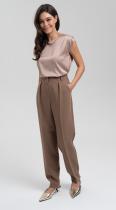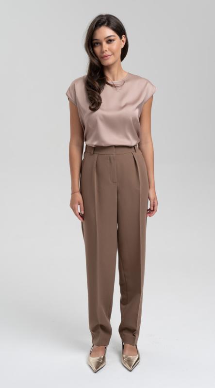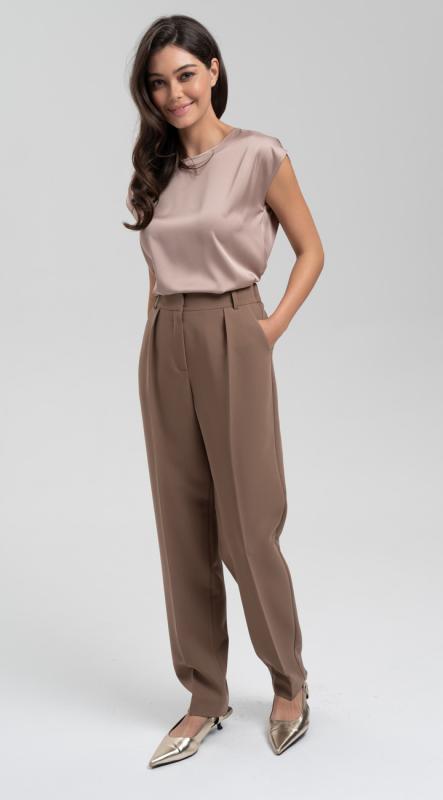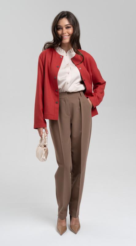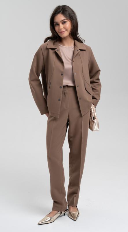 Брюки из костюмной поливискозы зауженного к низу кроя и с защипами по линии талии - стройнят и визуально делают ноги длиннее. Комфортная посадка на талии, функциональные карманы, притачной пояс-кокетка с резиной по задней половинке брюк, застегивающиеся на крючок - делают брюки идеальными для любой фигуры.