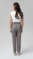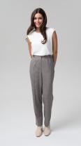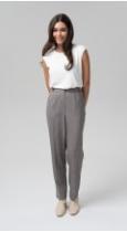 , с защипами по талии, с карманами, на притачном поясе-кокетке и резиной по задней половинке брюк, застегивающимся на крючок - безупречно подчеркнут любую фигуру. Удобная посадка на талии и заутюженные стрелки удлиняют рост и визуально стройнят.