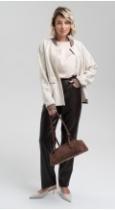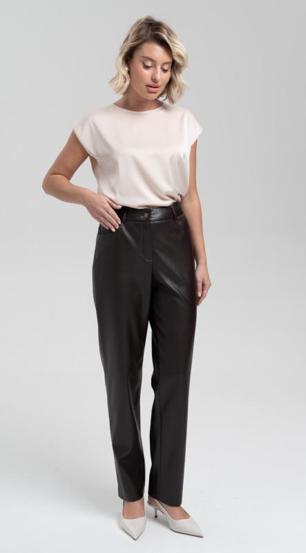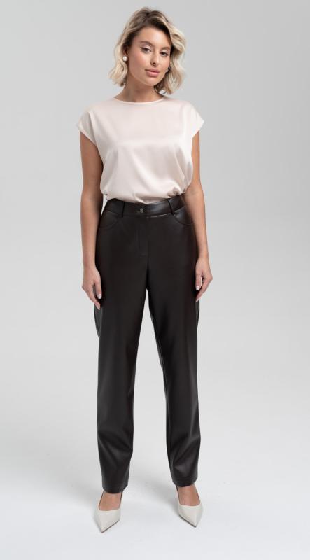 Экокожа не покидает подиумы уже несколько сезонов и будет с нами ещё долгое время! Брюки зауженного кроя из экокожи помогут сделать повседневный look интересным и фактурным. Комфортная посадка на талии, притачной пояс, застегивающийся на пуговицу-болт - делают брюки идеальными для любой фигуры.
