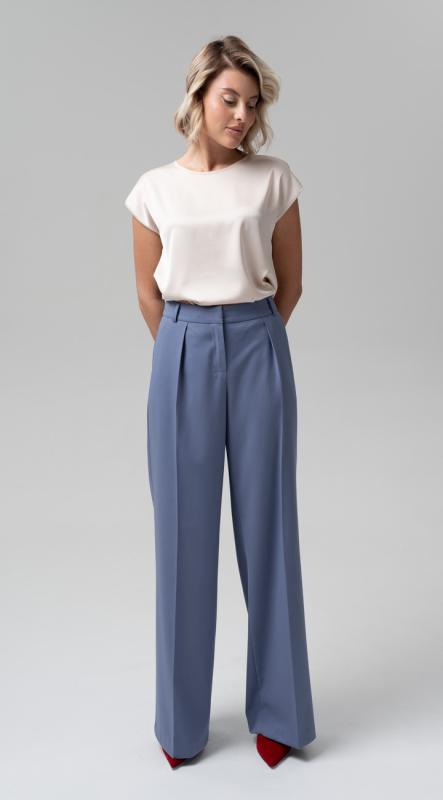 Свободные прямые брюки из комфортной поливискозы - идеально подойдут к любому образу в гардеробе. Классический крой с защипами, с поясом-кокеткой на эластичной тесьме по задней половинке брюк, застегивающийся на крючок - подойдет любому типу фигуры, а высокая посадка и заутюженные стрелки удлиняют рост и визуально стройнят.