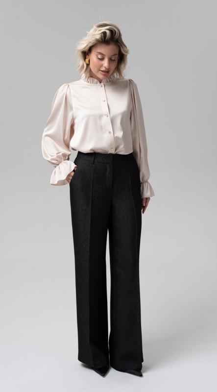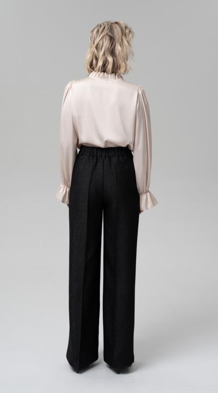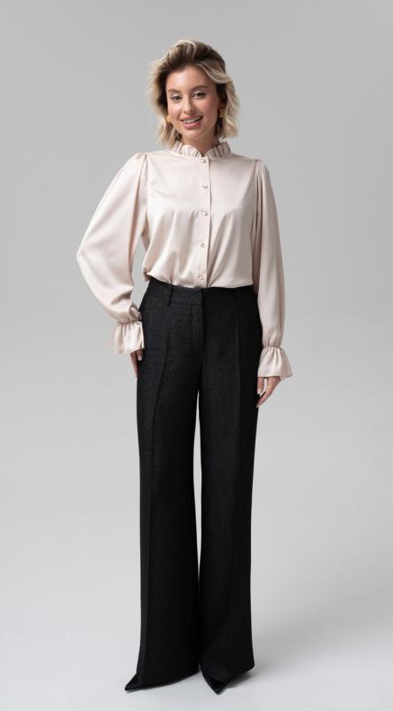Стильные умеренно-широкие брюки из струящейся поливискозы с эффектным мерцанием - идеально подойдут для создания вечернего образа. Брюки с карманами, с удобной посадкой на талии и на притачном поясе с резиной по задней половинке, застегивающиеся на пуговицу.