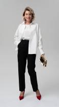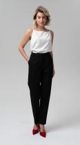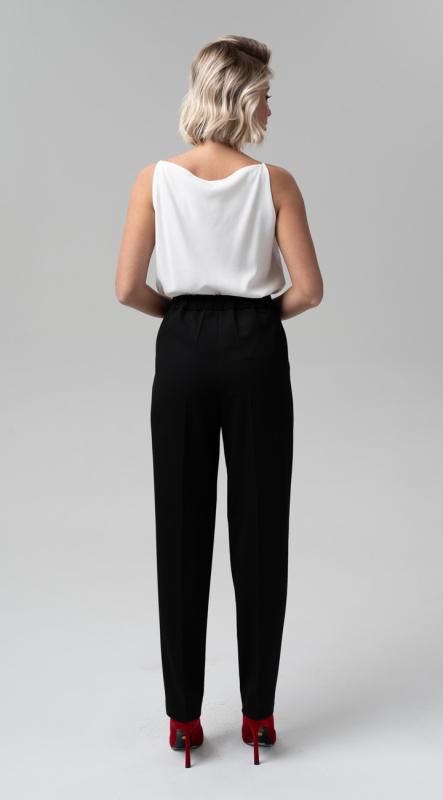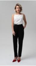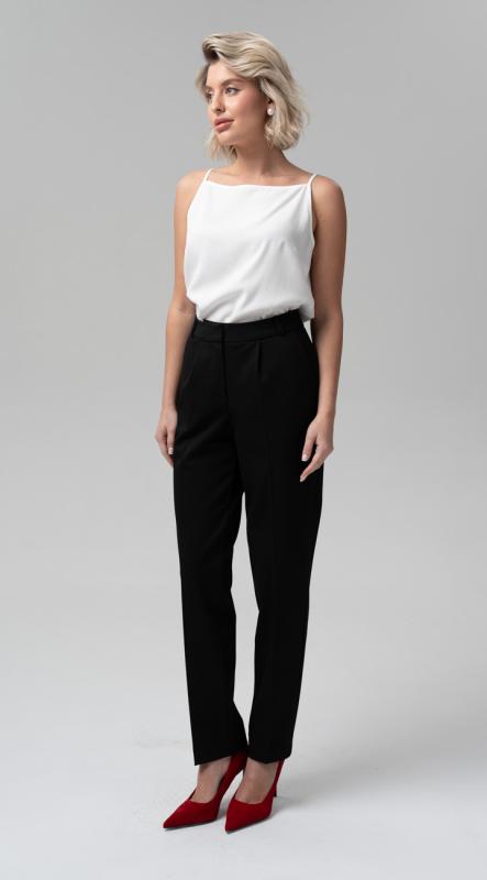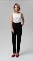 Свободная форма новых брюк никого не оставит равнодушным. Брюки зауженного к низу кроя и с защипами по линии талии из костюмной поливискозы - станут базой делового гардероба. Брюки с карманами, с удобной посадкой на талии и на притачном поясе-кокетке на эластичной тесьме по задней половинке брюк, застегивающиеся на крючок.