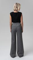 Комфортные широкие брюки из трикотажного полотна - отлично впишутся в повседневные образы. Эластичный пояс не будет стеснять движений: в них будет комфортно в течение всего дня. Посадка по талии и имитация стрелки на передней половинке брюк визуально удлиняют силуэт.