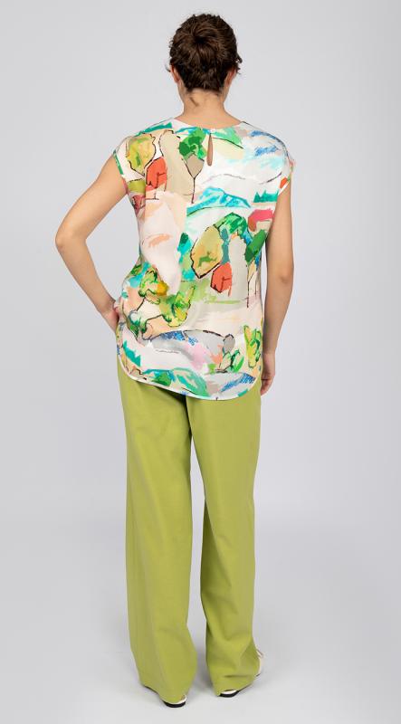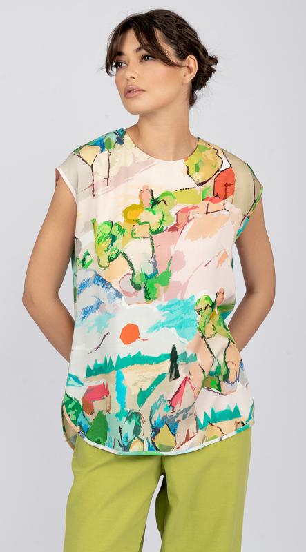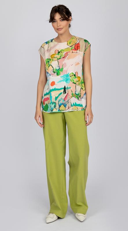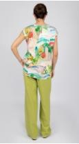Эффектный топ полуприлегающего силуэта из вискозы с ярким принтом подарит его обладательнице хорошее настроение на весь день. Идеальный вариант для летнего гардероба в сочетании с брюками от OPEN FASHION.