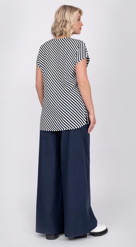 Эффектный топ свободного кроя со спущенной линией плеча из легкой вискозы в полоску - идеальное решение для летнего дня в сочетании с брюками из новой коллекции OPEN FASHION.