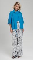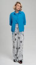Комфортная рубашка прямого покроя с отложным воротником на стойке и кулисой по низу из струящейся вискозы с добавлением волокон льна - станет ярким акцентом любого аутфита. Широкий рукав на отложной манжете длиной до локтя. Застежка на петли и пуговицы.