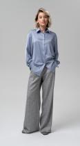 Базовая рубашка свободного силуэта из струящейся ткани с приглушенным блеском - стоит примерить лишь раз, и она станет вашей любимой вещью. Выверенный крой, комфортные линии, свободный рукав на притачной манжете и фигурный низ - вот составляющие успеха этого изделия. Застежка на петли и пуговицы.