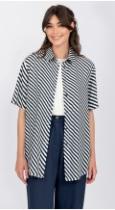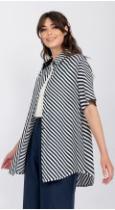 Эффектная рубашка свободного силуэта с отложным воротником на стойке из вискозы в полоску исполнена с учетом всех последних тенденций моды и прекрасно подойдет для создания образов в стиле casual. Широкий короткий рукав. Рубашку от OPEN FASHION - носите, не застегивая, поверх других вещей, как жакет. Застежка на петли и пуговицы.
