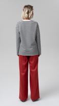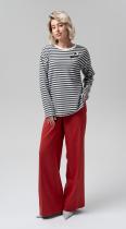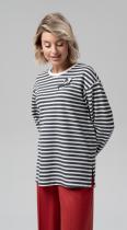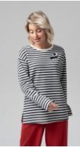 Лонгслив свободного кроя со спущенной линией плеча из трикотажного жаккарда в полоску - базовый предмет женского гардероба для создания ультрамодных многослойных образов. Комфортный рукав полной длины. В комплекте авторская брошь ручной работы.