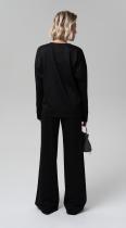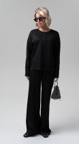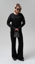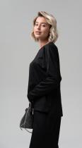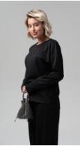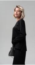 Стильная блуза свободного кроя из фактурного трикотажного полотна – будет органично смотреться как в повседневном образе, так и в офисном, создавая особенное настроение. Рукава полной длины на притачной высокой манжете. Металлизированный кант в швах - визуально удлиняет силуэт, добавляя этой модели сверкающую ноту.
