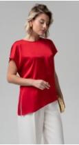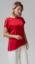 Эффектная блуза свободного силуэта с оригинальным подрезом и ассиметричным низом из струящейся поливискозы с деликатным блеском подойдет для любого повода — от праздничного ужина до деловой встречи.