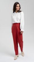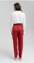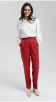 Благодаря цвету, свободные брюки с защипами станут ярким акцентом любого аутфита. В них легко можно отправиться как на работу, так и на party – достаточно подобрать подходящие аксессуары. Притачной пояс-кокетка с резиной по задней половинке не будет стеснять движений: в них будет комфортно в течение всего дня. А посадка по талии и зауженный крой визуально удлиняют силуэт.