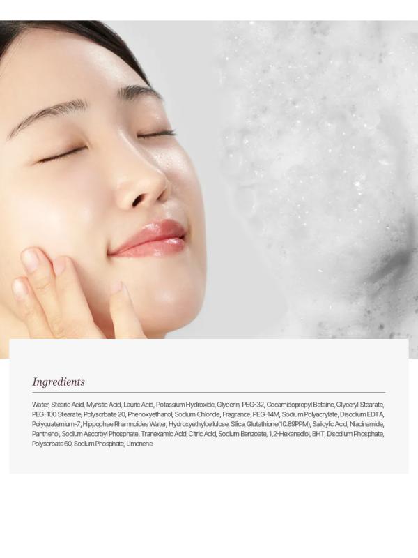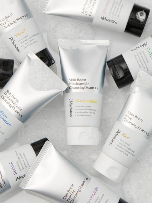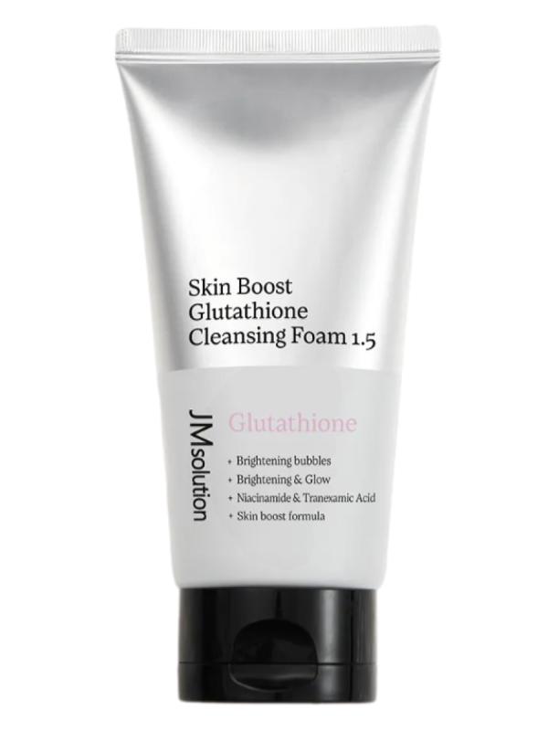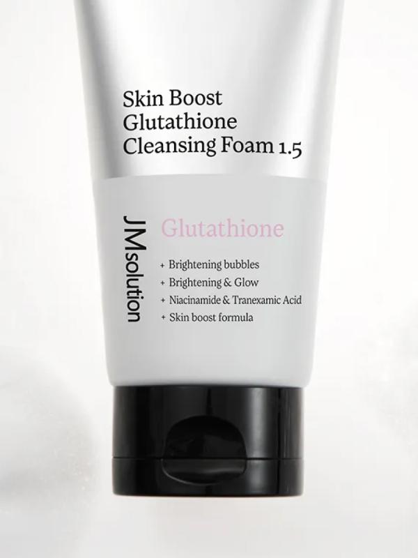 JMsolution Skin Boost Glutathione Cleansing Foam — это многофункциональная корейская пенка для умывания с мощным антиоксидантом глутатионом, которая эффективно очищает кожу от загрязнений, остатков макияжа и излишков себума, выравнивает тон и придаёт сияние. Формула с витаминами и кислотами способствует осветлению пигментации, мягкому обновлению кожи и укреплению её защитного барьера. Ключевые преимущества Глубокое очищение: Удаляет загрязнения, макияж и избыток себума. Очищает и сужает поры, предотвращая их забивание. Выравнивание тона: глутатион, ниацинамид и витамин С осветляют кожу, уменьшают пигментацию и следы постакне. Антиоксидантная защита: защищает кожу от окислительного стресса и преждевременного старения. Мягкое обновление кожи: салициловая кислота бережно очищает поры и ускоряет обновление клеток. Увлажнение и восстановление: пантенол и облепиховая вода питают, успокаивают и укрепляют защитный барьер кожи. Активные ингредиенты Глутатион — мощный антиоксидант, выравнивающий тон кожи и придающий с