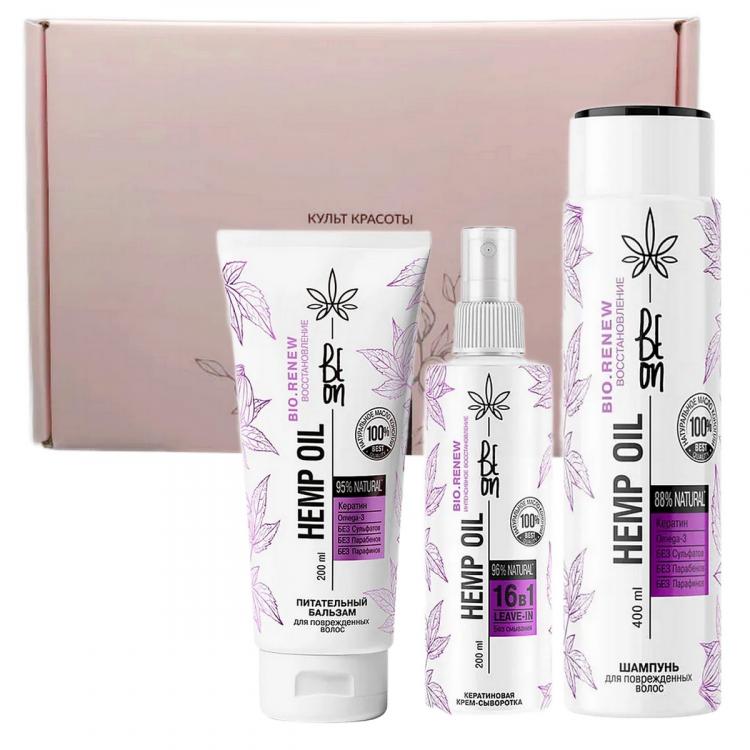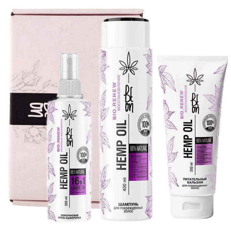 Состав набора: Шампунь Hemp oil Восстановление для поврежденных волос, 400 мл
