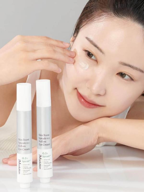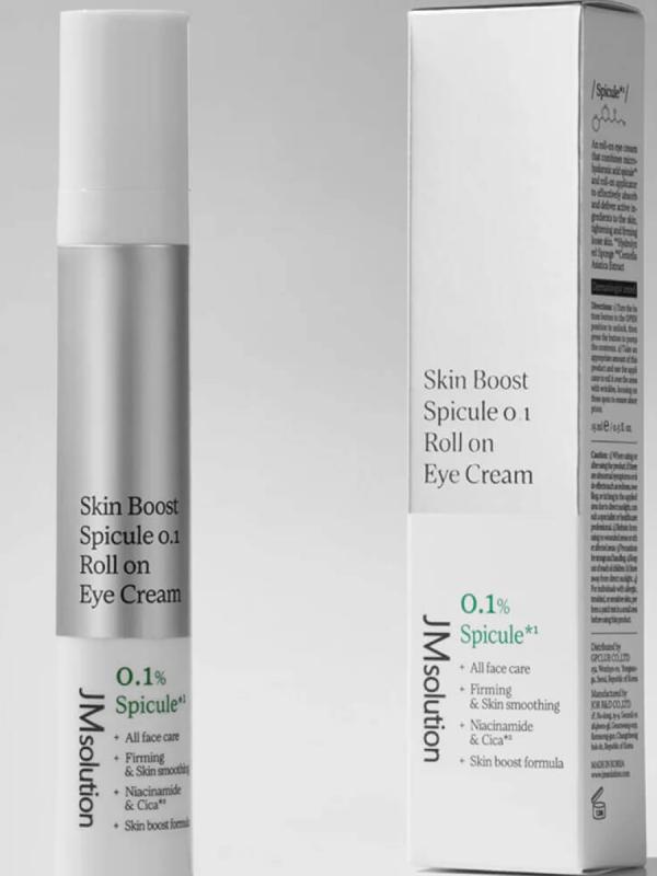 Крем для век с микроиглами JMsolution Skin Boost Spicule 0.1 — это премиальный корейский уход для век с выраженным лифтинг-эффектом. Он сочетает в себе уход и массаж, благодаря уникальной формуле с 0,1% спикул (Hydrolyzed Sponge) и удобному роликовому аппликатору из хирургической стали. Крем глубоко увлажняет и питает кожу, помогает разгладить морщины, уменьшить отёки и тёмные круги, выравнивает тон и придаёт сияние. Этот роликовый крем для век подходит не только для зоны глаз, но и для носогубных складок и шеи, обеспечивая комплексный уход и мягкий массаж, который стимулирует микроциркуляцию. Преимущества корейского крема для век со спикулами: Лифтинг-эффект и выравнивание рельефа кожи. Глубокое увлажнение и питание. Снижение выраженности морщин и пигментации. Укрепление защитного барьера и повышение эластичности. Эффективный массаж благодаря роликовому аппликатору. Активные компоненты: 0,1% спикул (Hydrolyzed Sponge) — микроиглы для глубокой доставки активных веществ и стимуляции обновления кожи. Ниацинами