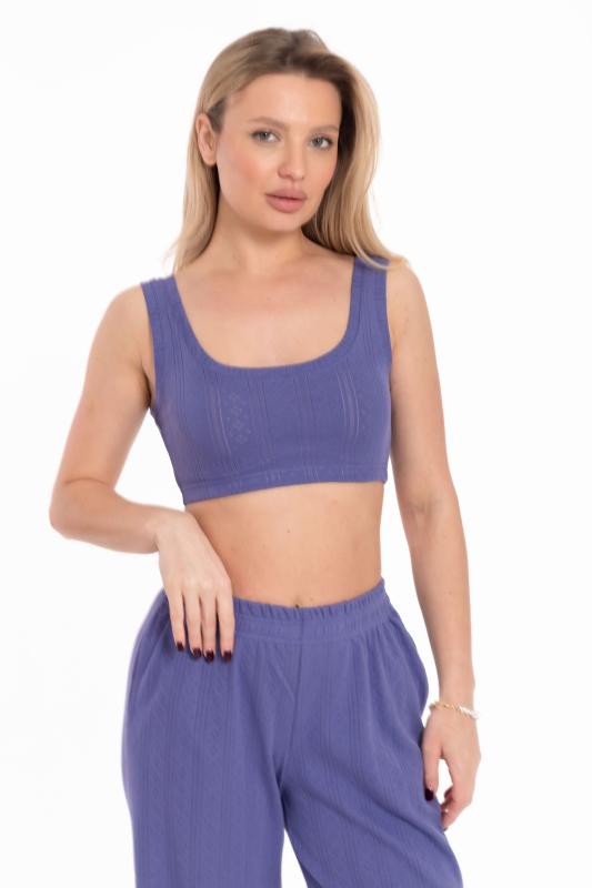 Коллекция: М325431с, М325432с, М325433с, М325434с, М325435с, М325436с Топ выполнен из трансферной рибаны, обеспечивающей идеальную посадку по фигуре. Облегающий крой модели подчеркивает естественные линии тела. Широкий вырез и низкая линия спинки создают элегантный силуэт, а бретели обеспечивают удобство. Резинка по низу топа гарантирует комфортную посадку, не сползая в течение дня. Этот топ станет стильной и удобной основой для домашнего отдыха и расслабления.