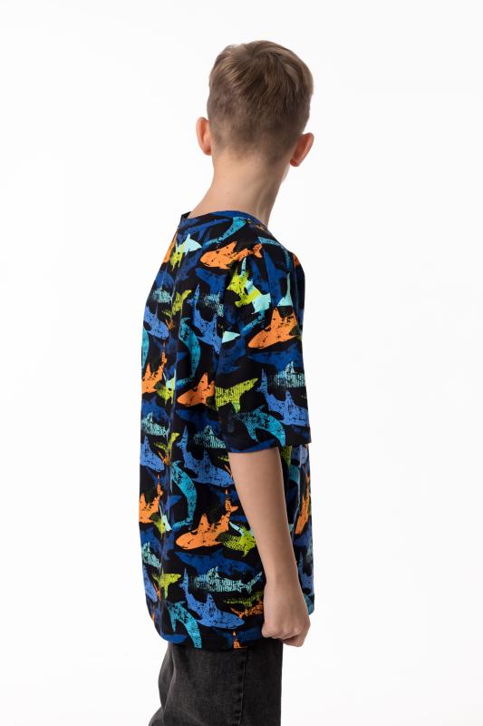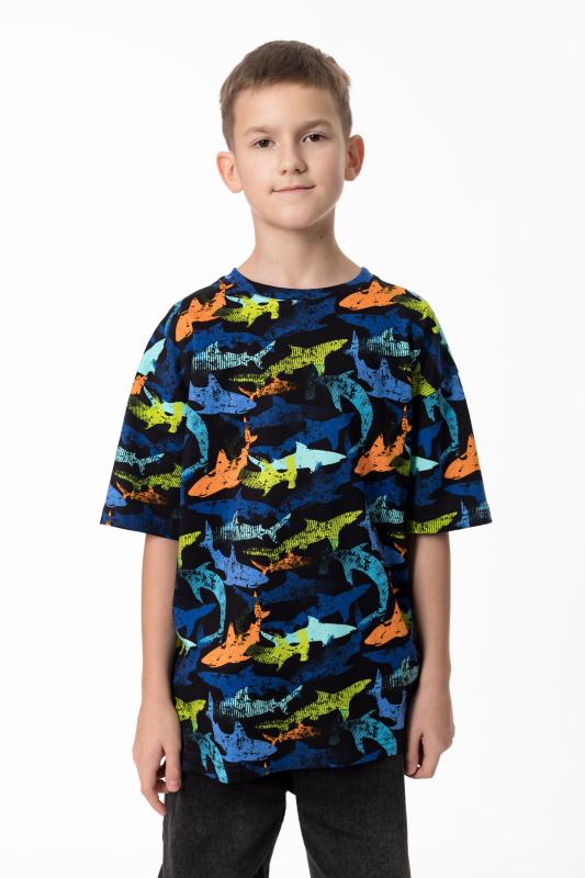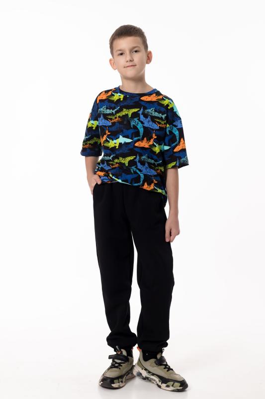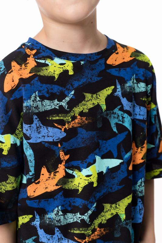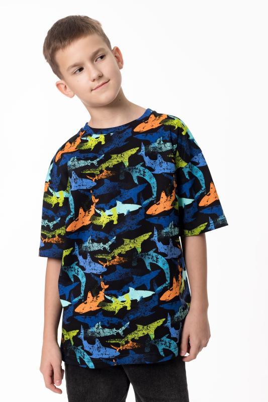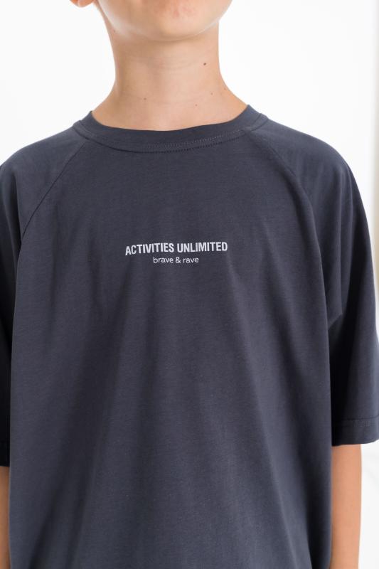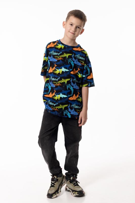 Детская футболка выполнена из мягкого хлопкового полотна, приятного к телу и комфортного в носке. Модель свободного кроя с круглым вырезом горловины и рукавами длиной до локтя обеспечивает удобство и свободу движений. Спущенная линия плеча придаёт изделию современный и непринуждённый вид, делая футболку отличным вариантом для повседневного гардероба ребёнка.