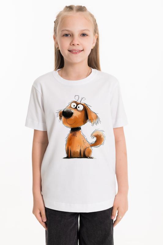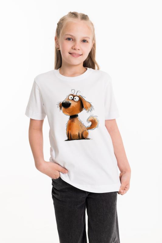 Футболка из однотонной кулирки с лайкрой. С круглым вырезом горловины и принтом спереди.