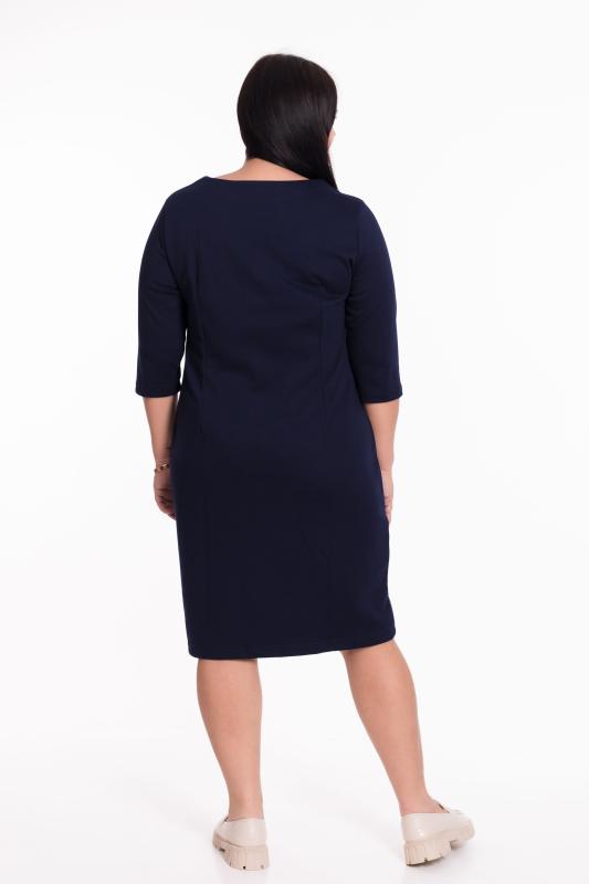 Платье женское выполнено из полотна академик, силуэт облегающий. Горловина имеет круглый вырез, рукава длиной 3-4. Спереди разрезная полочка со вставкой из отделочного полотна, в качестве декора пришиты пряжки, по низу изделия разрез. Размерный ряд: 48-62. ВНИМАНИЕ!!! На данную модель гарантии по цвету нет! Расцветка может отличаться от представленной на фото.
