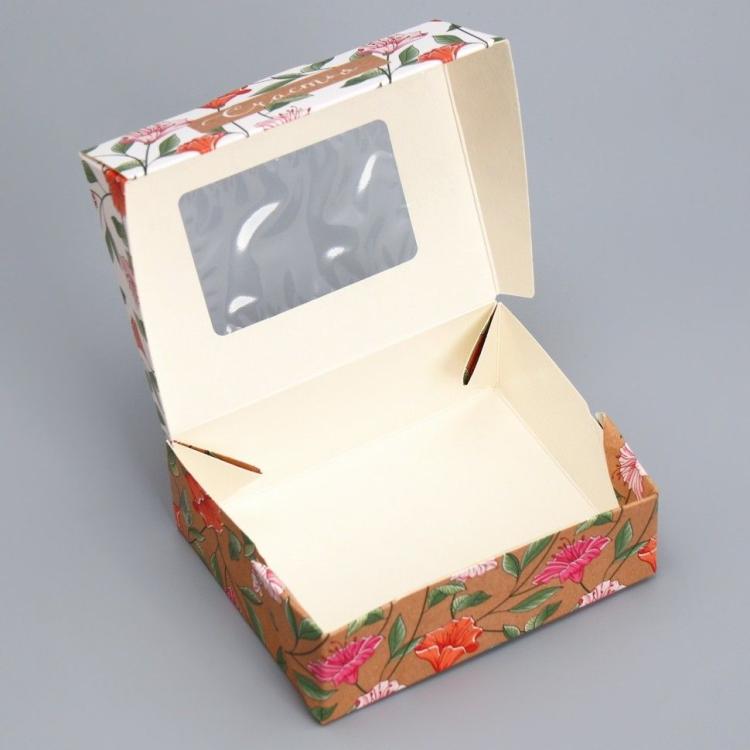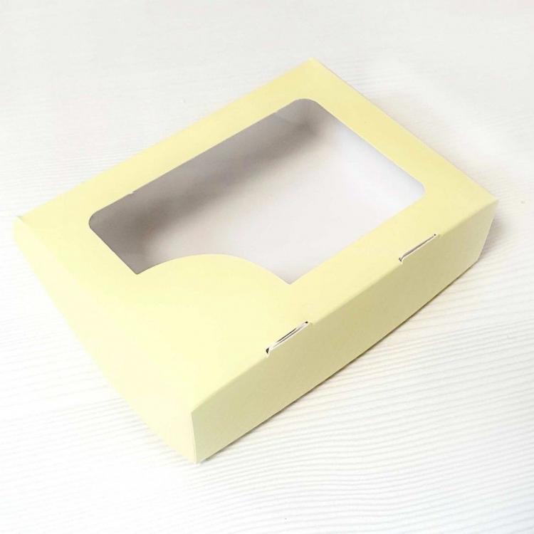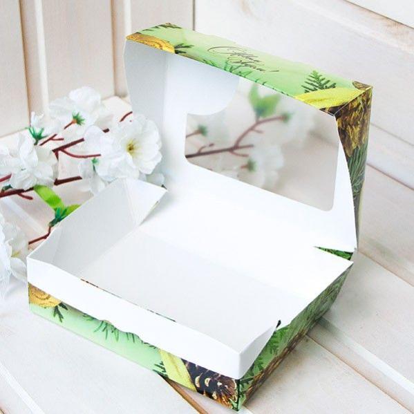 Коробка с прозрачным окном для кондитерских изделий защищает от маслянистых пятен, жира, температурных нагрузок. Коробrf прочно фиксирует подложку или поднос и обеспечивает безопасную транспортировку.