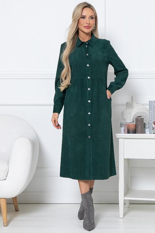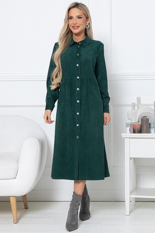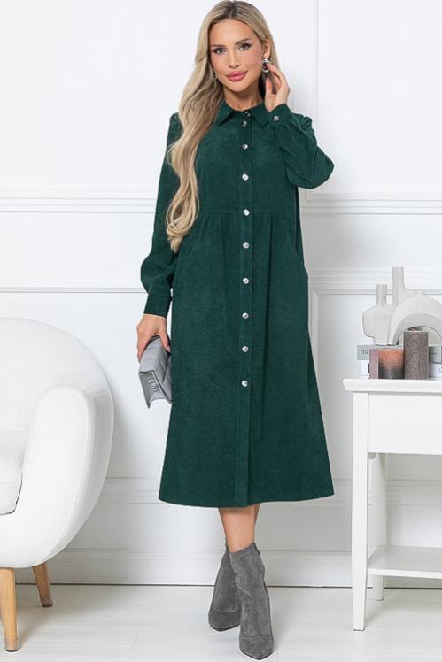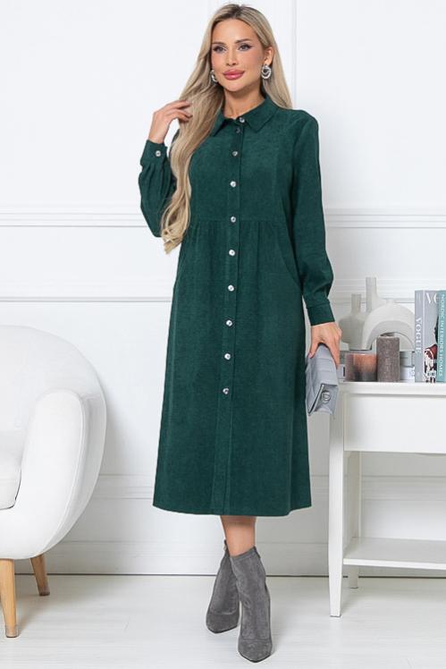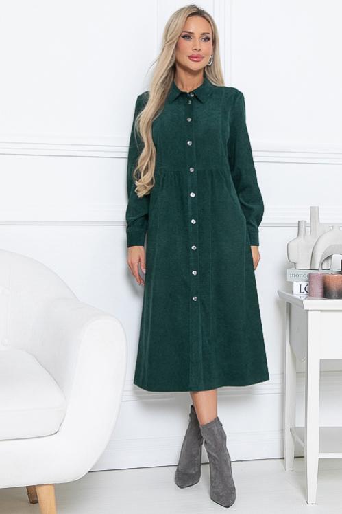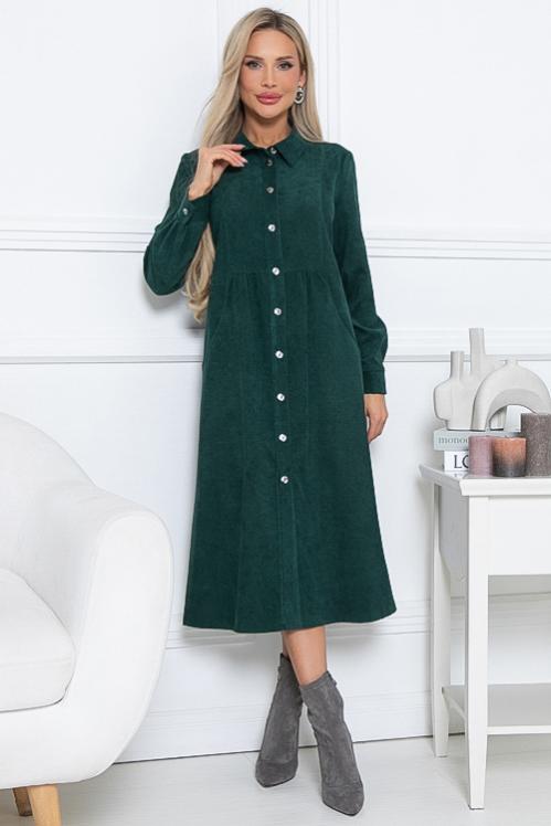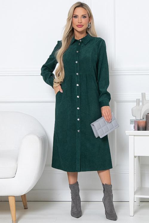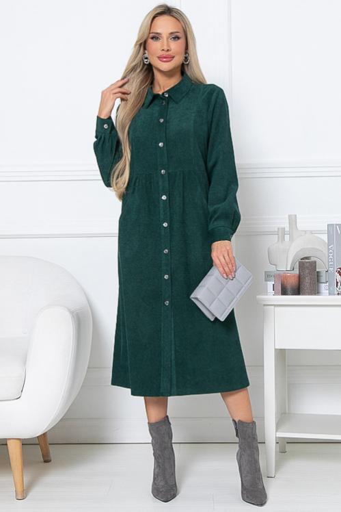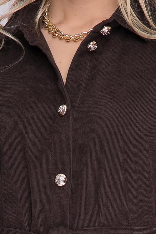 Платье из микровельвета свободного силуэта.По переду центральная застежка на пуговицы до низа и функциональные карманы.Воротник отложной на стойке. Cостав: 50% вискоза,45% п-э,5% лайкра
