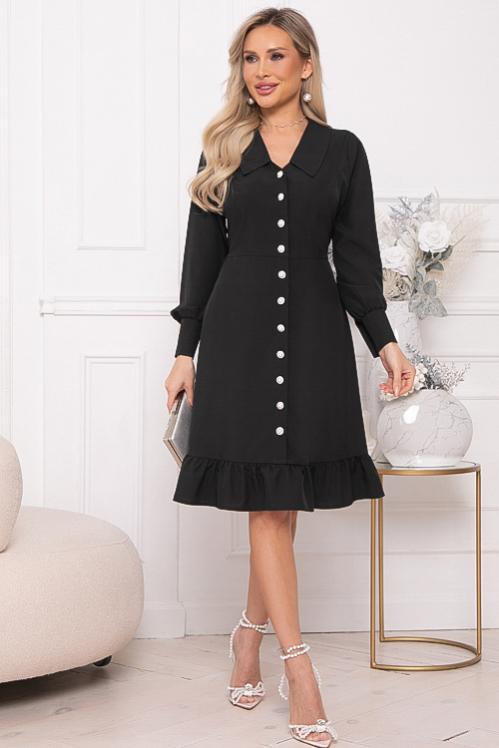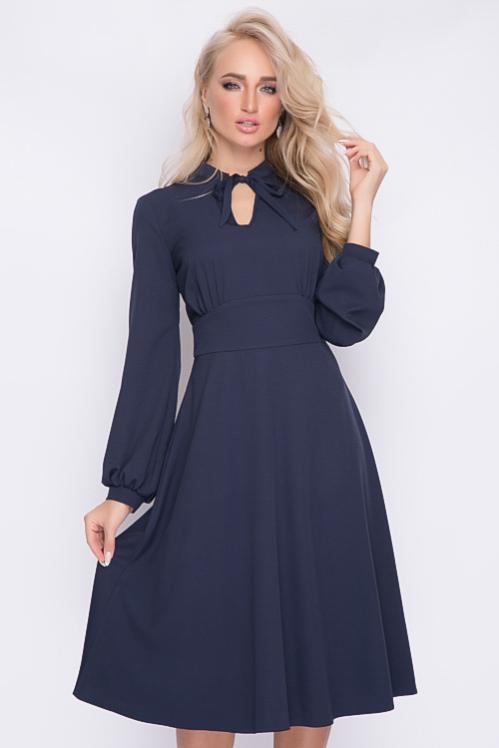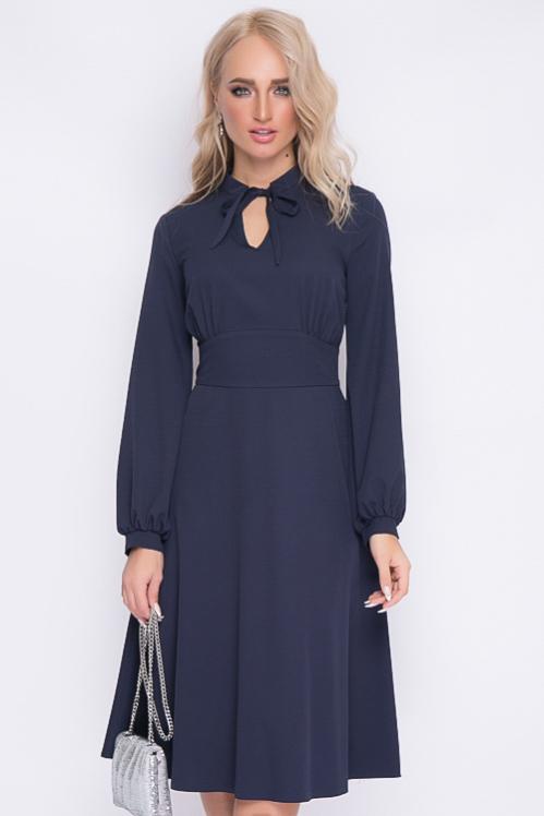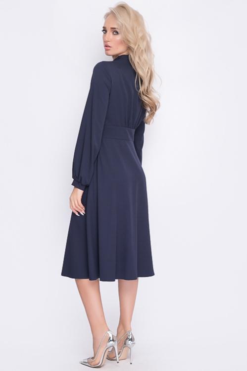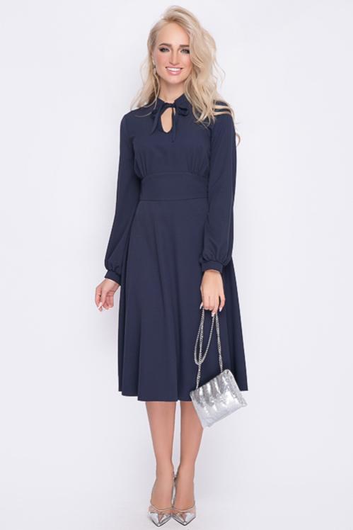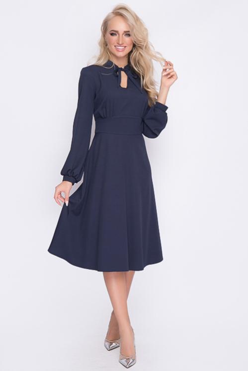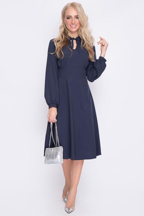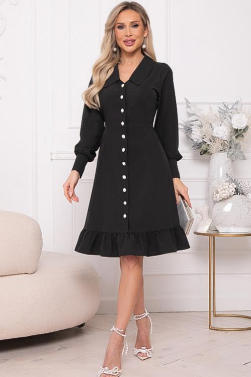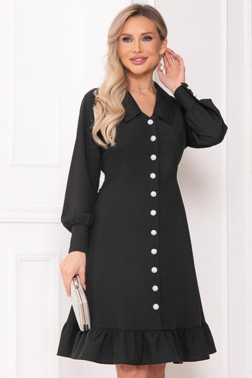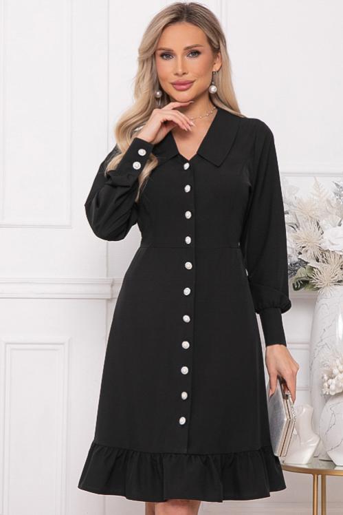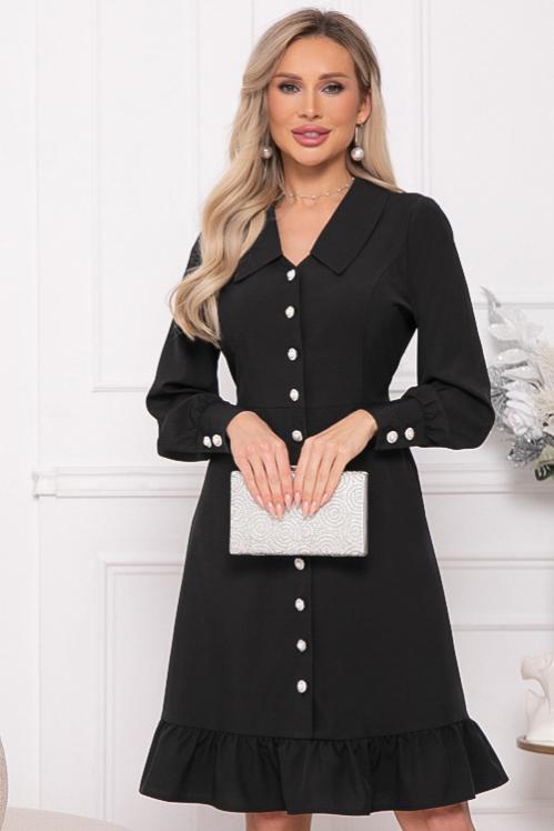 Нарядное платье из текстильного полотна в боковых швах талии пояски-завязки,можно завязать сзади и скорректировать талию.Отрезная юбка А-образного силуэта с воланом по низу.Изюминка платья воротник ,манжеты и шикарные жемчужные пуговицы.По полочке центральная застежка до волана. Cостав: 50% вискоза,45% п-э,5% лайкра