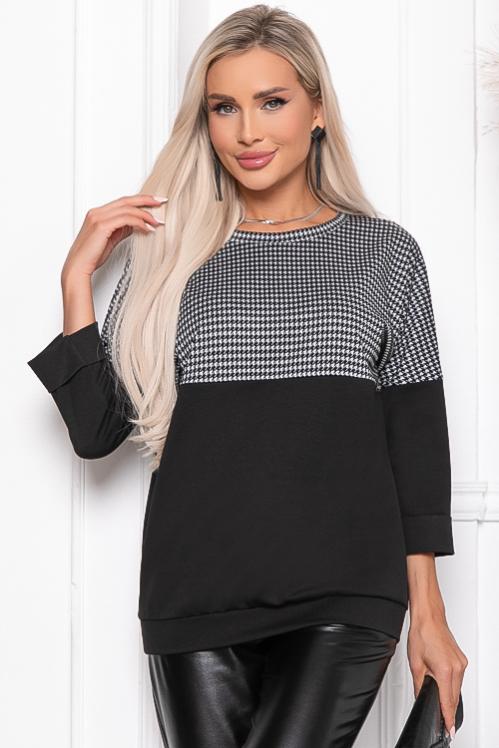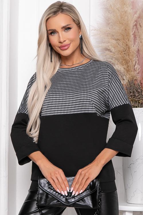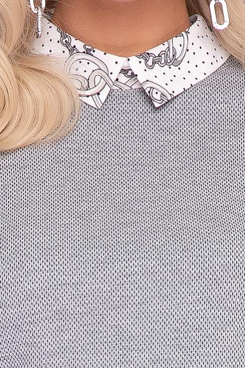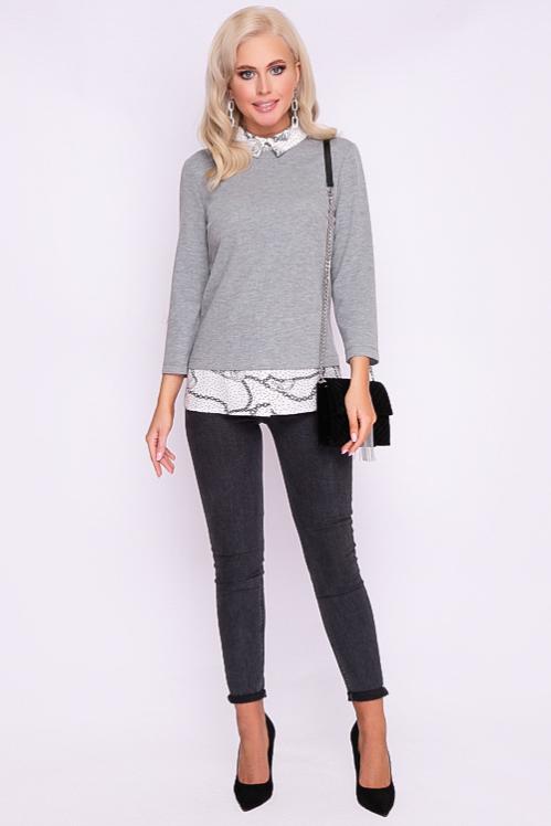 Комбинированная блузка из трикотажного полотна с воротником на стойке из текстильного полотна. Cостав: 50% вискоза,45% п-э,5% лайкра