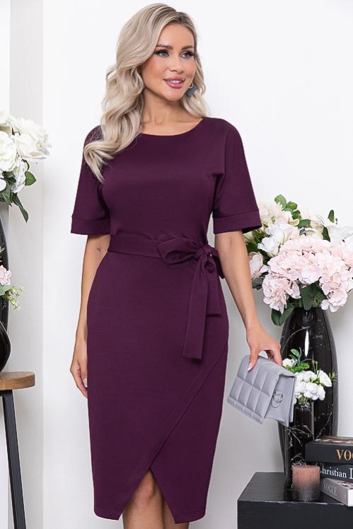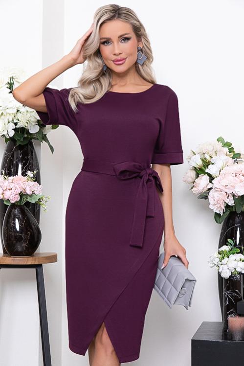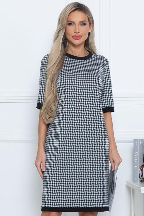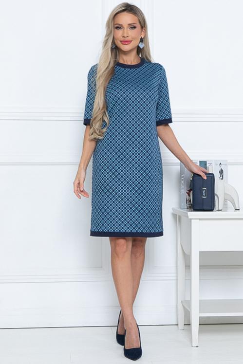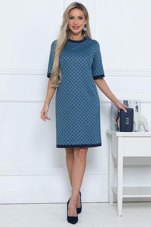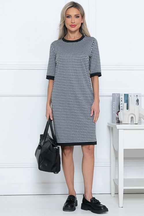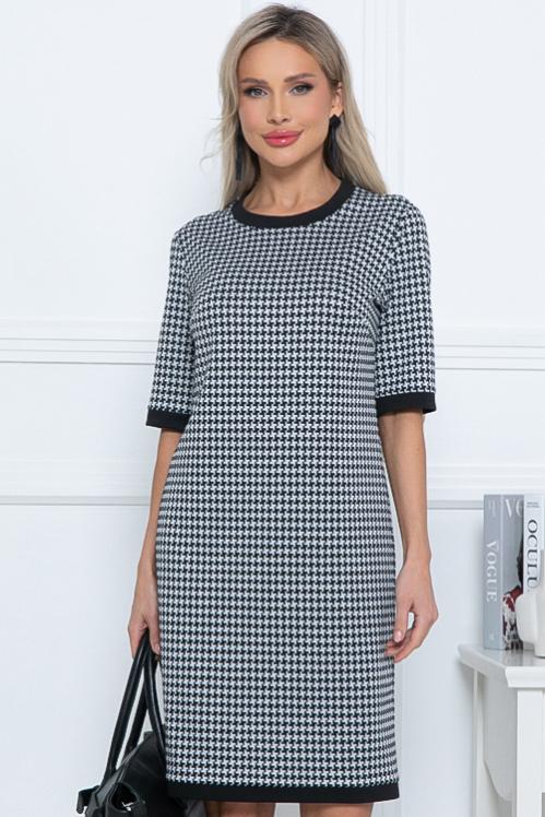 Платье из трикотажного полотна. Длина спинки: 44-96 46-97 48-98 50-99 52-101 54-102 Длина рукава: 44-31,5 46-31,5 48-32 50-32,5 52-32,5 54-32,5 Рост модели 168 см Размер модели 44 Cостав: 70% вискоза,25% п-э,5% лайкра