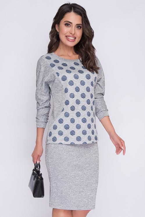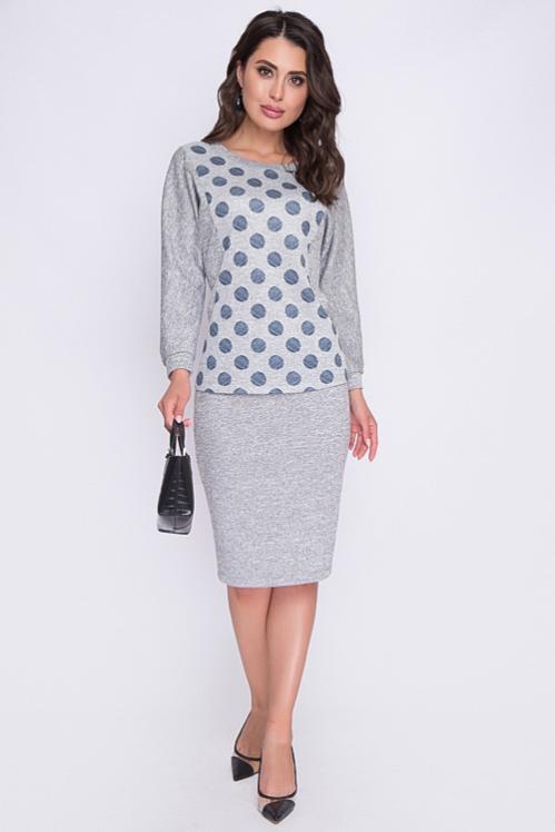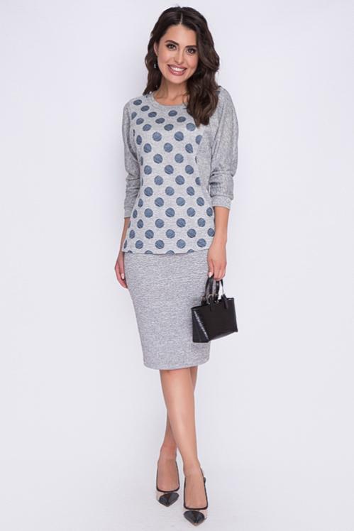 Комплект из трикотажного полотна джерси,состоящий из блузки и юбки. Cостав: 70% вискоза,25% п-э,5% лайкра