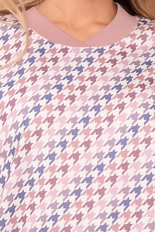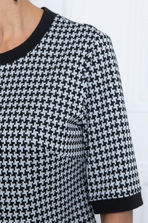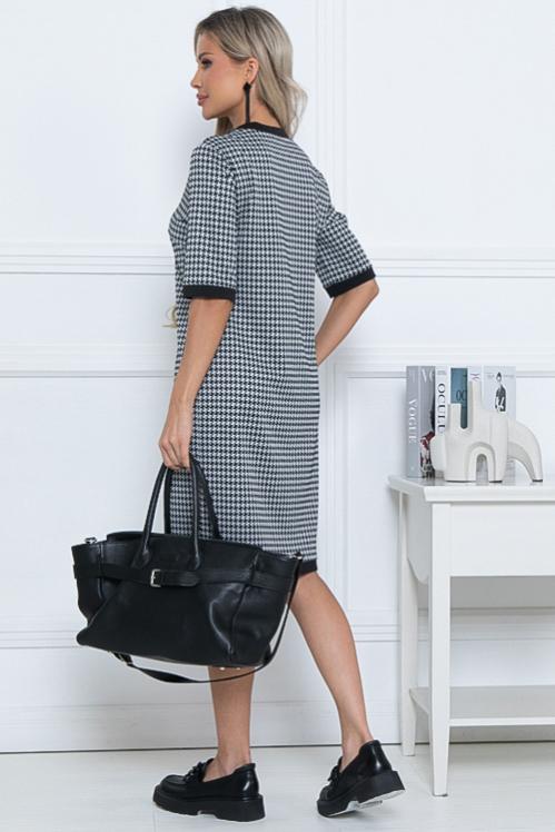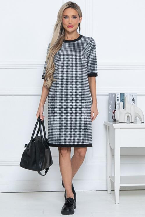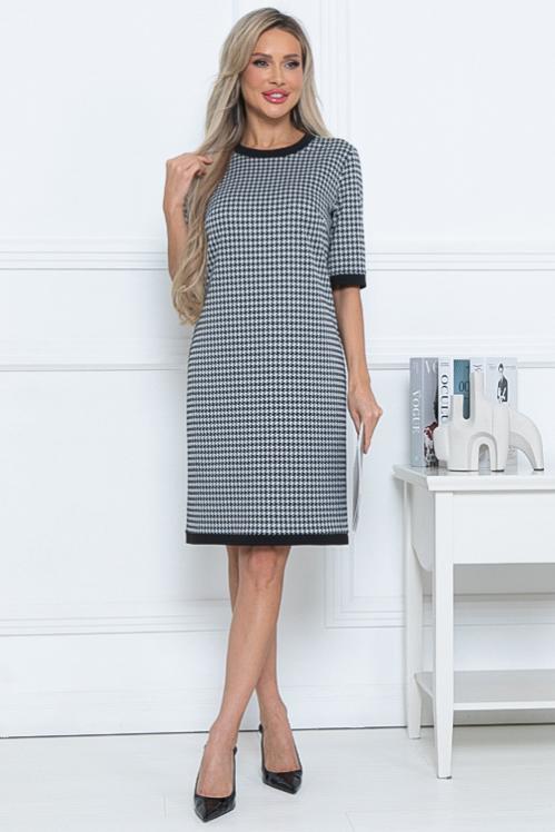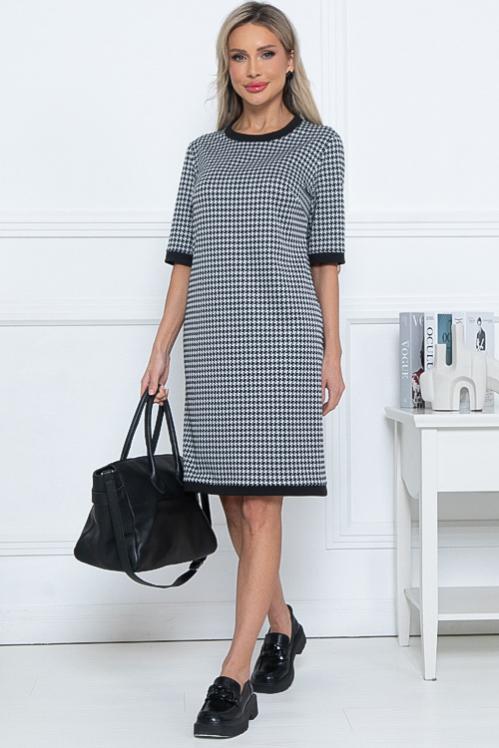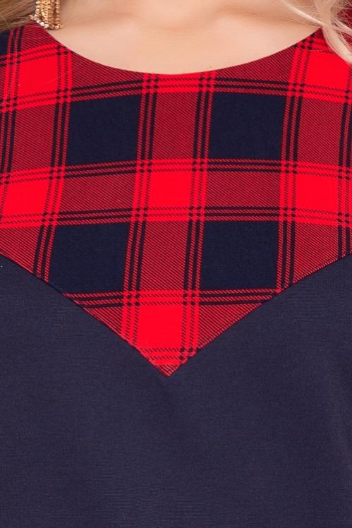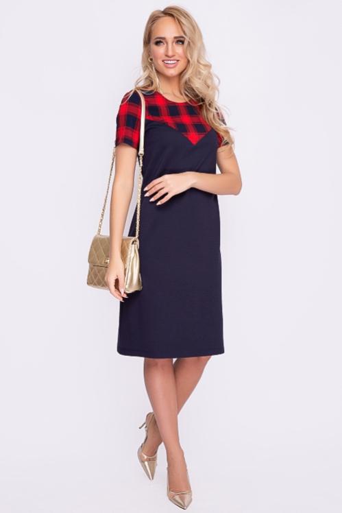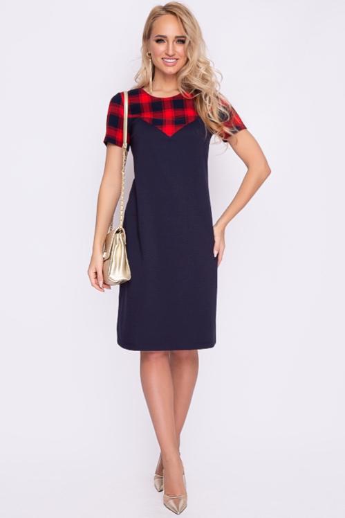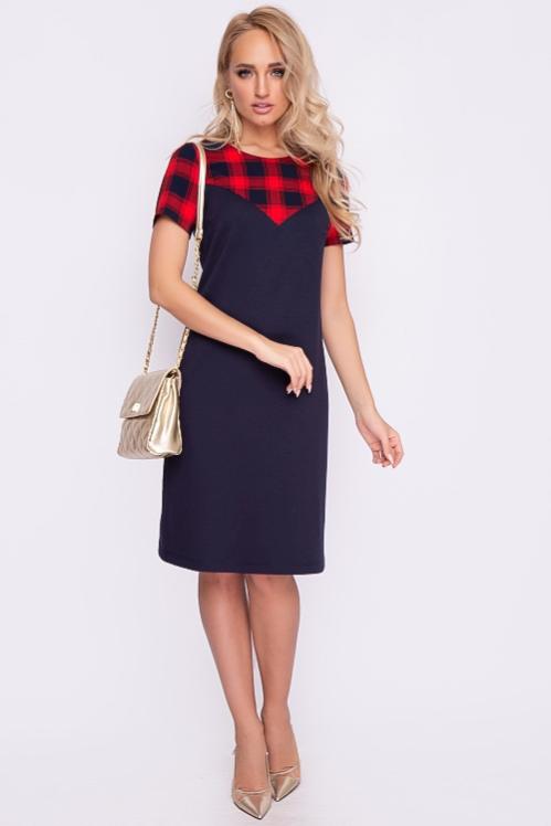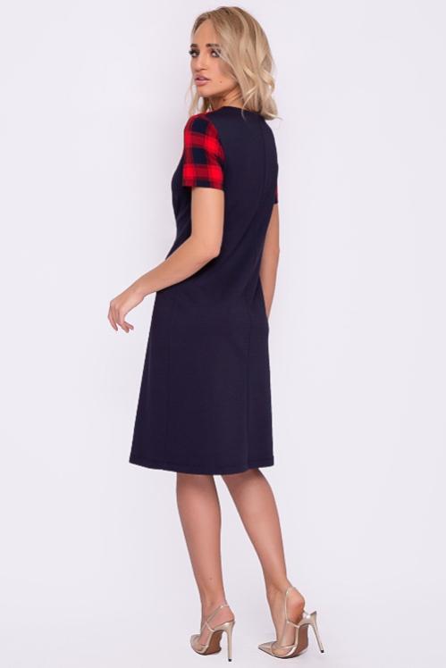 Платье А-образного силуэта из трикотажного полотна джерси,кокетка и рукава из костюмной ткани в клетку. Cостав: 70% вискоза,25% п-э,5% лайкра