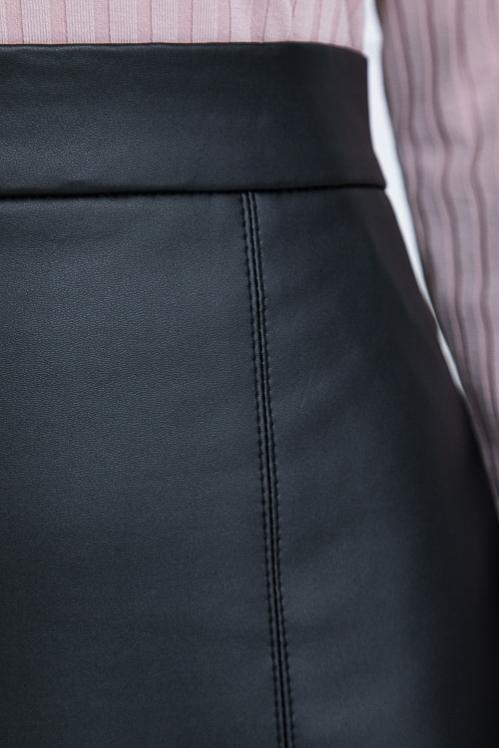 Юбка трапецевидного силуэта из эко кожи с притачным поясом и застежка молния по спинке. Cостав: 100% п-э