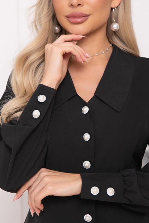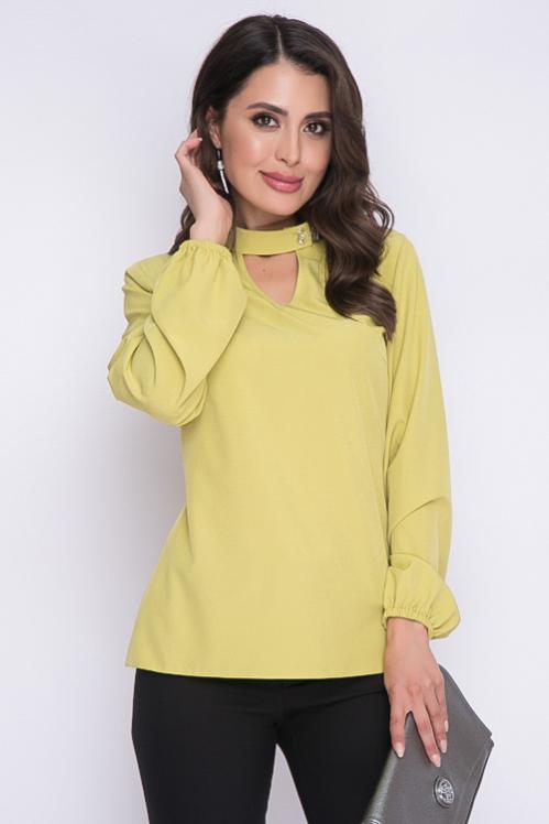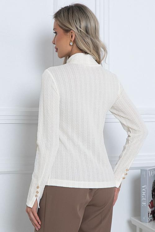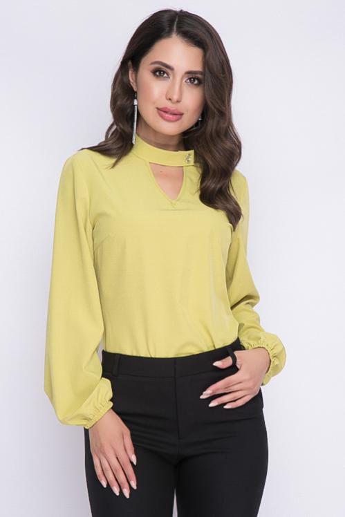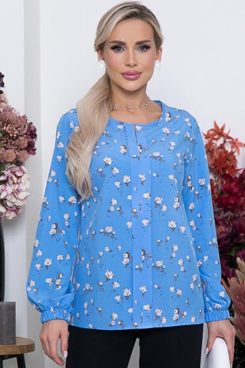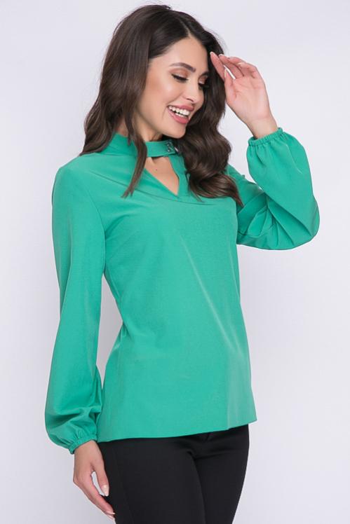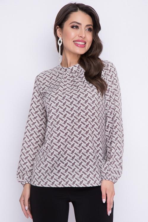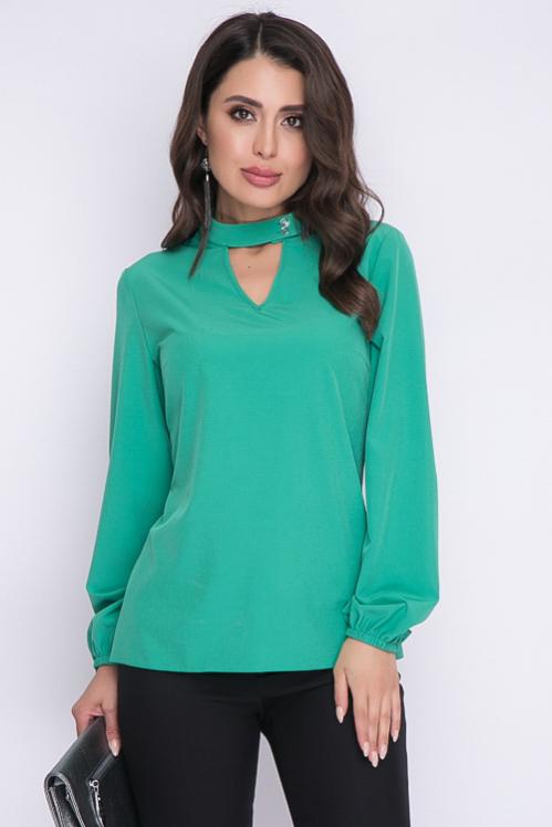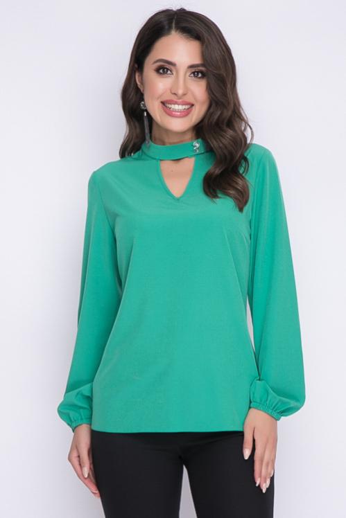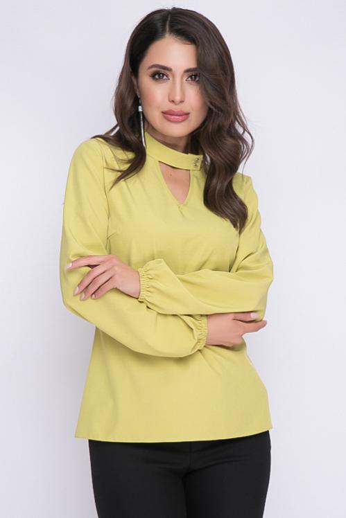 Блузка из текстильного полотна,ворот стойка с застежкой на пуговицу. Cостав: 50% вискоза,45% п-э,5% лайкра