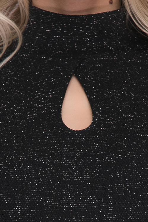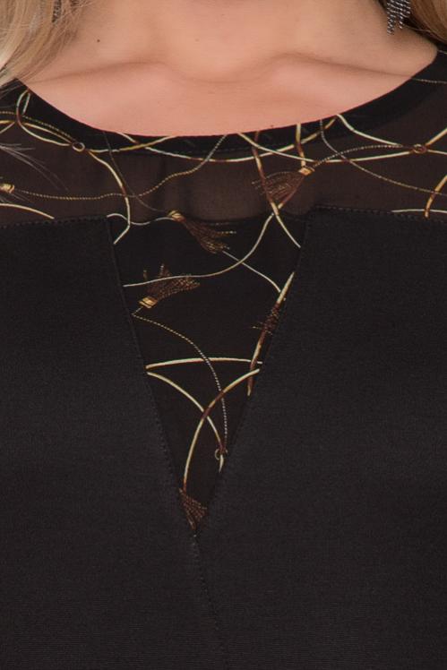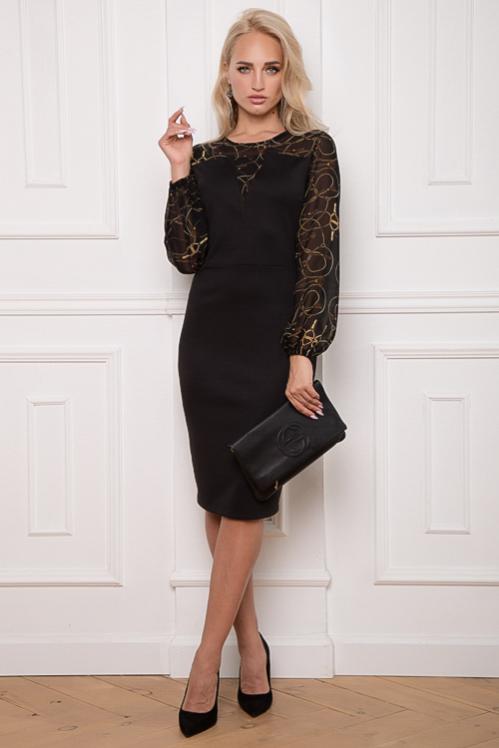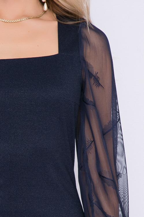Платье из трикотажного полотна с легким блеском и вырезом каре.Рукав втачной из сетки. Cостав: 30% вискоза 65% п-э,5% эластан