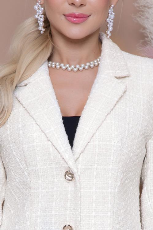 Шикарный жакет из качественного костюмного твида(ткань производство Турция) полуприлегающего силуэта, по переду и спинке на подкладе. Центральная застежка на три пуговицы. Воротник отложной с лацканами. По переду функциональные карманы с клапанами. Длина спинки: 44-67 46-67 50-69 Длина рукава: 44-61 46-61 50-62 Рост модели 168 см Размер модели 44 Cостав: 40% вискоза,40% хлопок,20% п-э