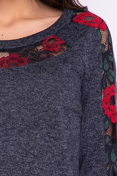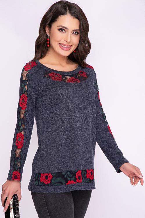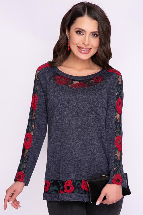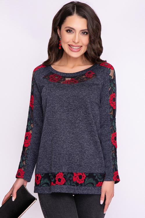Блузка из трикотажного полотна украшена хлопковым кружевом. Cостав: 30% вискоза,65% п-э,5% лайкра