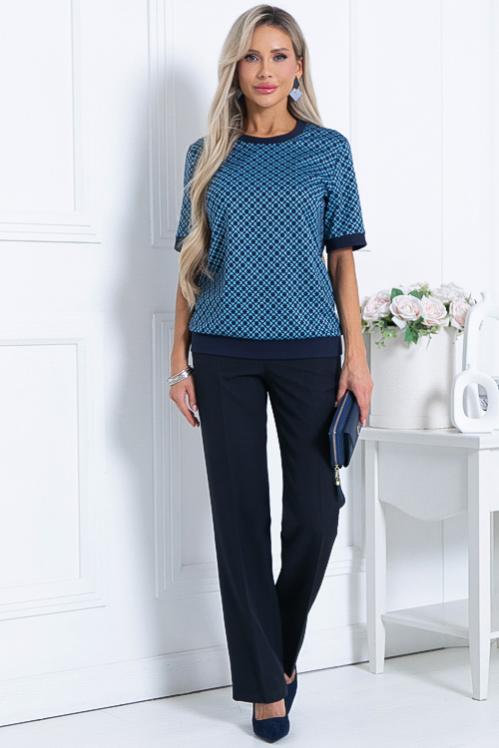 Брючный комплект из жаккардового трикотажного полотна в мелкую клеточку. Cостав: 50% вискоза,45% п-э,5% лайкра