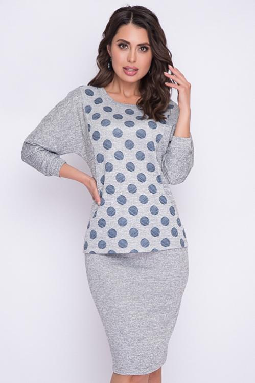 Комплект из трикотажного полотна,состоящий из блузки и юбки. Cостав: 30% вискоза,65% п-э,5% лайкра