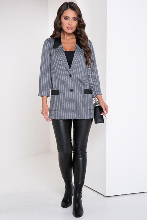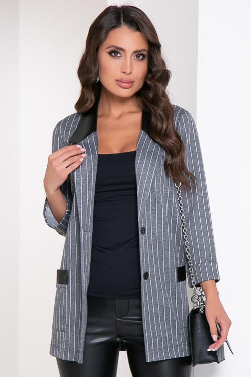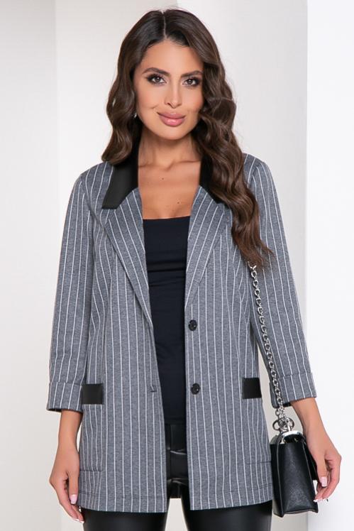 Жакет из трикотажного полотна джерси с отделкой эко кожа. Cостав: 70% вискоза,25% п-э,5% лайкра