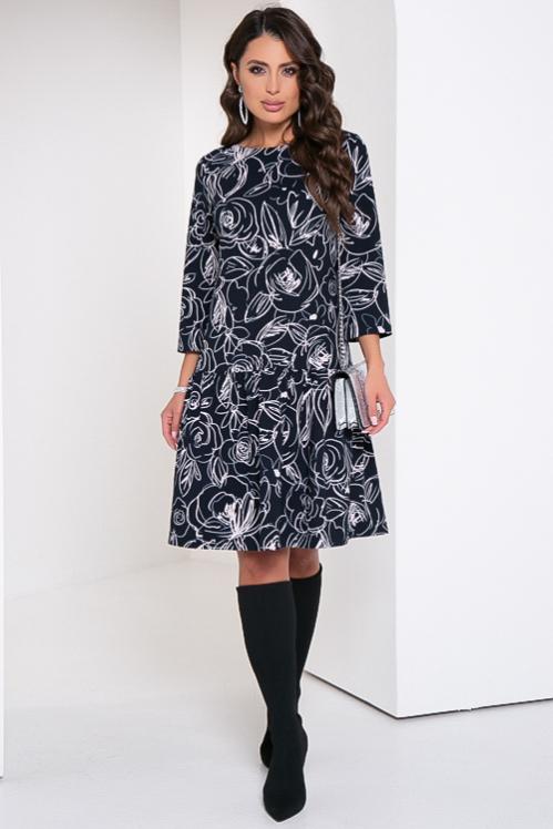 Платье свободного силуэта из трикотажного полотна с притачной оборкой по низу. Cостав: 30% вискоза 65% п-э,5% эластан