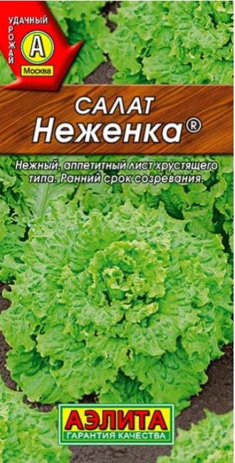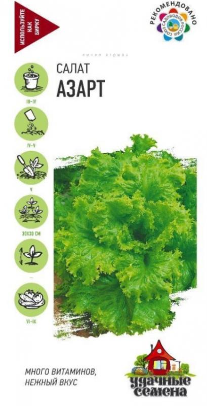 Раннеспелый листовой сорт (период от массовых всходов до начала хозяйственной годности 40-45 дней). Урожайность высокая, 3,0-3,5 кг-м2 . Розетка листьев прямостоячая, высотой 11-13 см, Ø 20-22 см. Масса одного растения 130-160 г. Листья нежные, сочные, хрустящие, гофрированные, очень декоративные. Рекомендуется для потребления в свежем виде. Сорт устойчив к цветушности. Салат обладает повышенным содержанием кальция и минеральных солей, нормализует обмен веществ, стимулирует выведение холестерина из организма.
