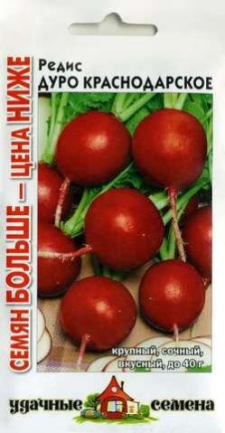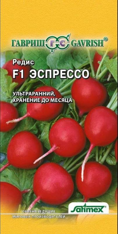 Ультраранний (18-23 дня от всходов до технической спелости) гибрид для выращивания в открытом и защищенном грунте. Корнеплоды округлые, красные, массой 15-20 г, гладкие. Мякоть белая, плотная, хрустящая, очень нежная и сочная, слабоострого вкуса.Ценность гибрида: дружное формирование корнеплодов, устойчивость к пониженной освещенности, сохранность до месяца без потери качеств. Предпочитает легкие, структурированные, хорошо удобренные почвы.Посев в грунт проводится в течение всего сезона: с конца апреля до начала мая, повторно — с середины июля по конец августа. Урожай редиса весь сезон!