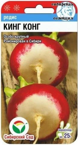 Среднеспелый (25-30 дней от всходов до технической спелости) сорт. Рекомендуется для выращивания в открытом и защищенном грунте. Корнеплод очень крупный, округлой формы, диаметром до 8-10 см, красного цвета. Мякоть белая, сочная, хрустящая, слабоострая. Вкусовые качества очень высокие. Масса корнеплода 30-40 г. Относительно устойчив к болезням. Используется для посева в ранние сроки. Урожайность 3,2 - 3,4 кг-м2. Ценность сорта: постепенное нарастание массы корнеплодов, благодаря чему увеличивается период использования.