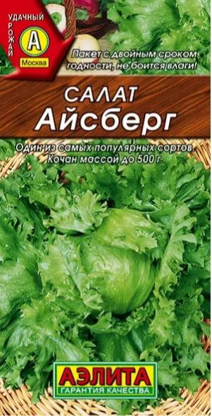 Один из самых вкусных салатов с хрустящим типом листа. Известен также как «ледяной» салат, или «криспхед». За 50-60 дней от всходов формирует компактную розетку с тугим кочаном O 10 - 15 см и массой 200-500 г. Листья в кочане широкие, сочные, нежные