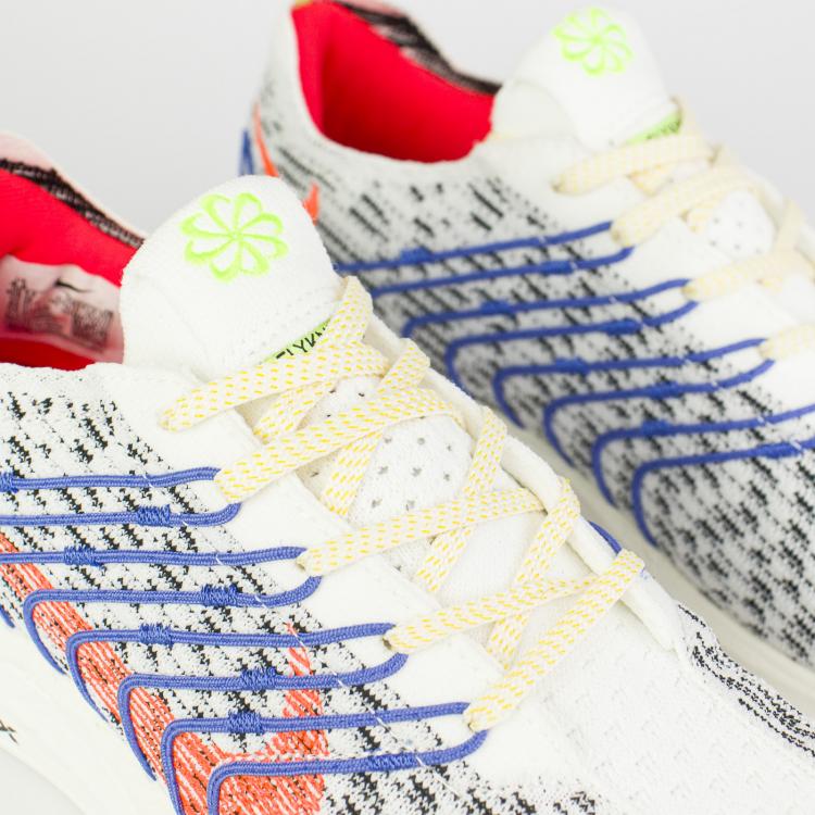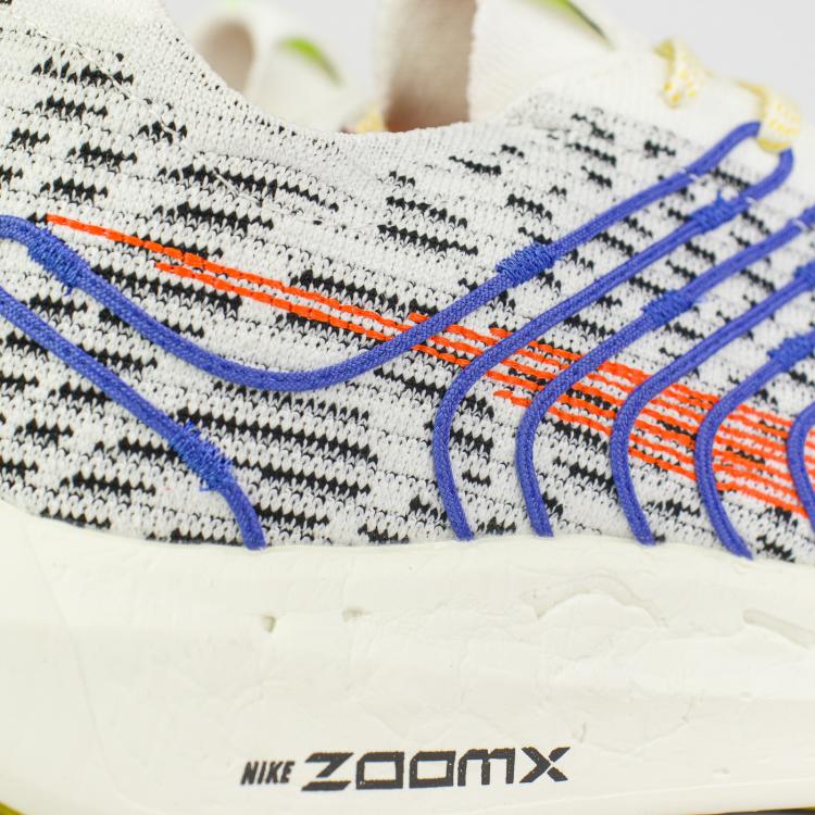 Модель изготовлена из переработанного материала не менее чем на 50% по весу, в том числе из 100% переработанной пряжи Flyknit на верхней части и переработанного пеноматериала ZoomX для промежуточной подошвы, вдохновленной экологически чистой моделью Air Zoom Alphafly Next Nature 2021 года.