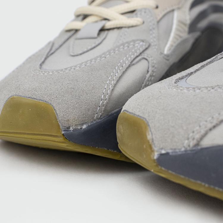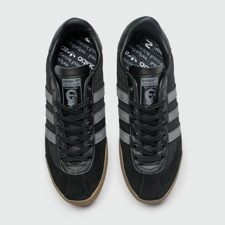 Основой для новой модели послужил винтажный силуэт Padiham SPZL. Легкие акценты расставлены в виде серых логотипов по бокам, зигзагообразной отделки иск.кожаных полосок и портрета Лиама Галлахера с двойным брендингом на языках. Эта пара – дань уважения музыканта к кроссовкам adidas, которые он фанатично носил с самого детства.
