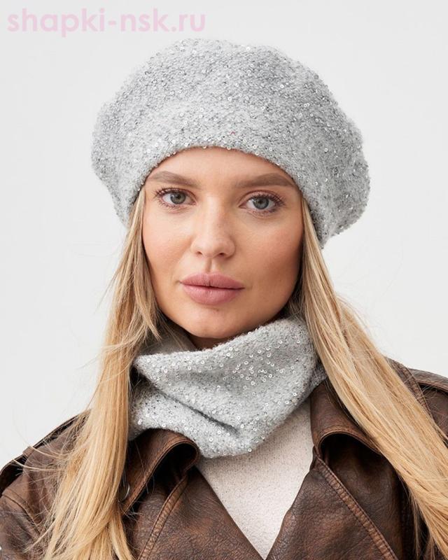 Декор: пайетки Тип изделия: Берет Размер: 56-58 Состав: 35%альпака33%хлопок20%шерсть10%ПА2%эластан Подклад: Без подклада Толщина: шапка двойная