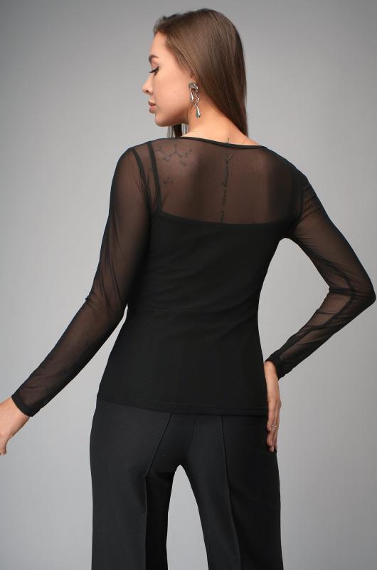 Притягивай взгляды!; Женский лонгслив выполнен из прочной мягкой сетки с добавлением вискозы с эластаном. Прозрачная фактура и глубокий черный цвет добавляют изысканности, которая будет сопровождать тебя целый день.; В комплект входит черный топ, который гармонично дополняет образ и создаёт стильный многослойный эффект.; Приталенный крой моделирует фигуру, делая силуэт притягательным. Обтягивающий лонг в сеточку универсален, в нем будет комфортно и удобно летом, весной и даже осенью. Длинные рукава создают элегантный силуэт, сохраняя комфорт и легкость. Круглая горловина завершает образ, добавляя классическую нотку.; Трендовый сетчатый лонг не оставит равнодушным никого. Нарядный летний лонгслив придаст уверенности и дерзости. Прозрачный лонг в обтяг идеален для повседневных весенних и осенних образов в стиле smart casual (смарт кэжуал).; Облегающий черный лонгслив для женщин подойдёт тем, кто ценит яркие и смелые решения!; Модель Анфиса, ее рост 170, параметры: 88-67-97. На ней размер 44.; Бренд Happyfox ;