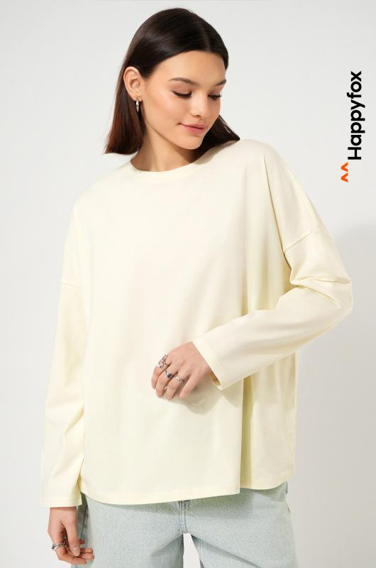 Женский лонгслив оверсайз создан, чтобы дарить свободу и комфорт! ; Однотонный лонг светло-желтого цвета смотрится стильно и сдержанно, а хлопковый трикотаж делает его невероятно приятным к телу. Демисезонный джемпер прямого кроя со спущенным плечом и круглым вырезом легко впишется в любой стиль. ; Преимущества:; – трикотажная ткань мягкая и дышащая;; – хлопок с добавлением эластана для большей прочности (плотность 160 г-м2);; – удобный оверсайз для свободы движений;; – универсальная базовая модель на каждый день;; – подходит как для девушек, так и для подростков.; Размерный ряд позволяет носить модель как подростковую кофту и как лонгслив для женщин. Подойдёт для офиса и для прогулки — всегда выглядит легко и современно.; Бренд Happyfox ; Страна: Узбекистан ; Состав: хлопок 95%, эластан 5% ; Материал: Кулирная гладь ; Плотность ткани: 160 г-м2
