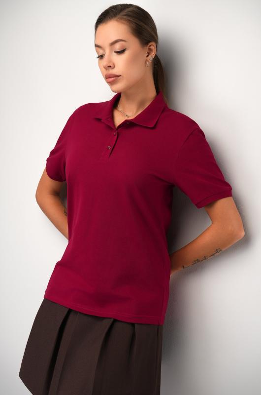 Однотонное бордовое поло — стильная база для повседневных образов.; Женская футболка поло выполнена из 100% хлопка: ткань дышит, хорошо держит форму и приятна к телу.; Преимущества:; — мягкий хлопковый трикотаж лакост (160 г-м2) — комфорт на весь день;; — классический отложной воротник и застёжка на пуговицы — строгие акценты для повседневного стиля;; — лаконичный крой и короткий рукав;; — глубокий темно-красный цвет — универсальное и стильное решение;; Тенниска подходит для образов в стиле кэжуал, спорт-шик и минимализм.; Модель Валентина, ее рост 177 см, параметры: 85-66-90. На ней размер 44.; Бренд Happyfox ; Страна: Узбекистан ; Состав: 100% хлопок ; Материал: Лакост ; Плотность ткани: 160 г-м2